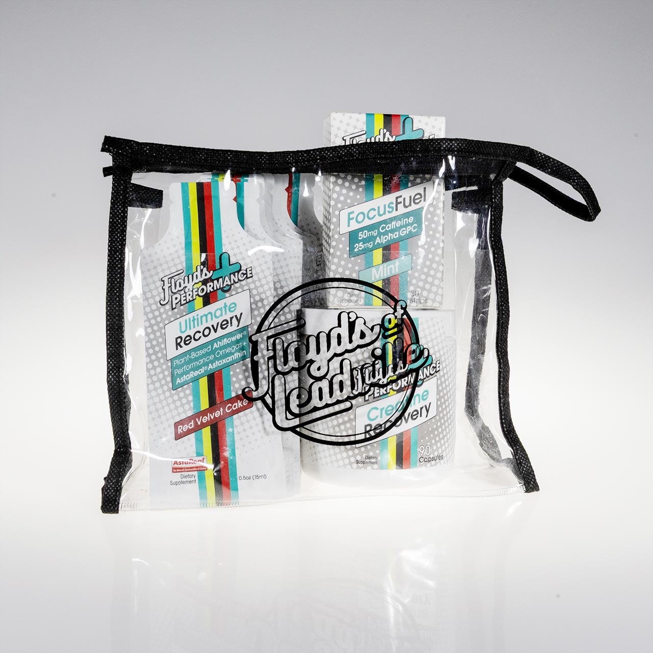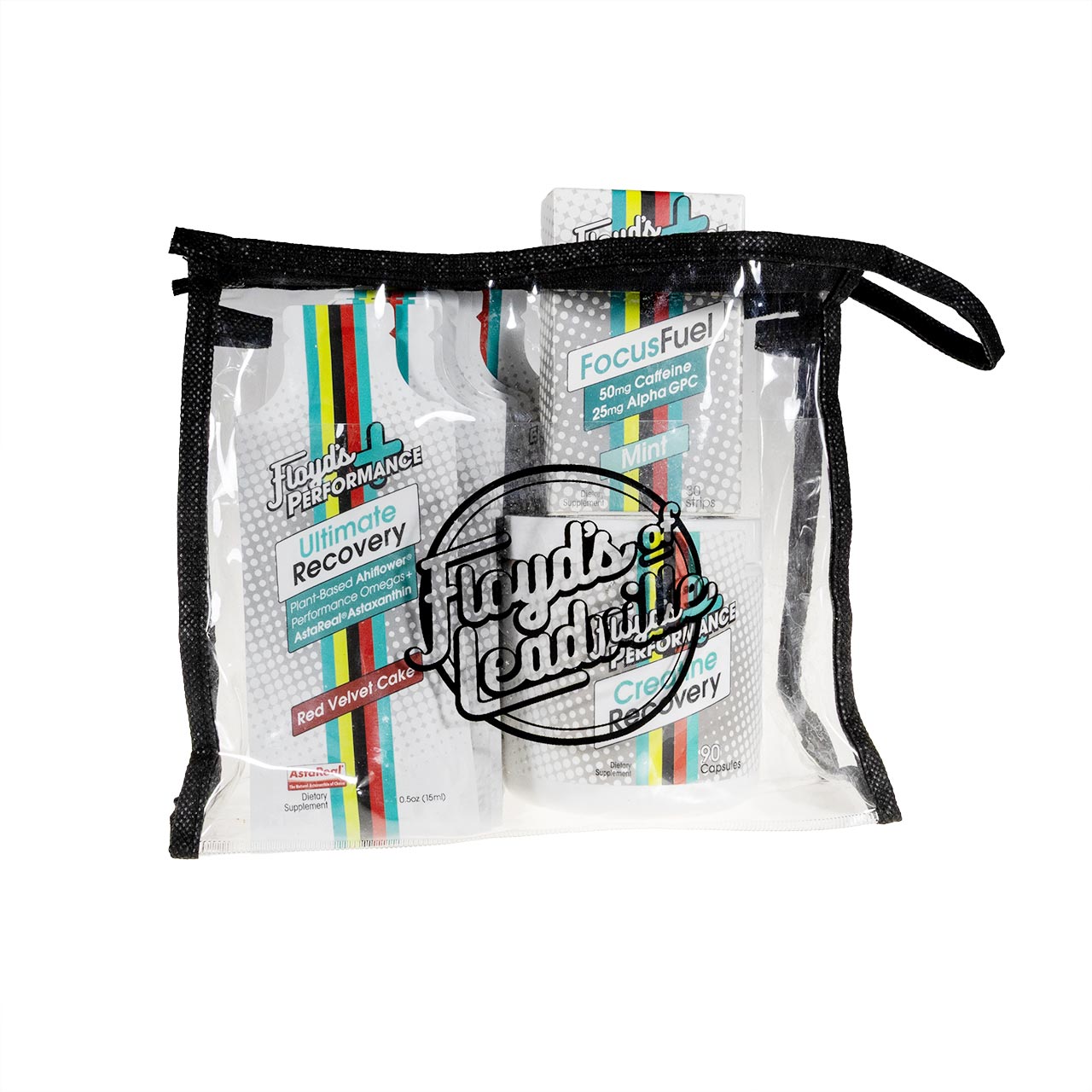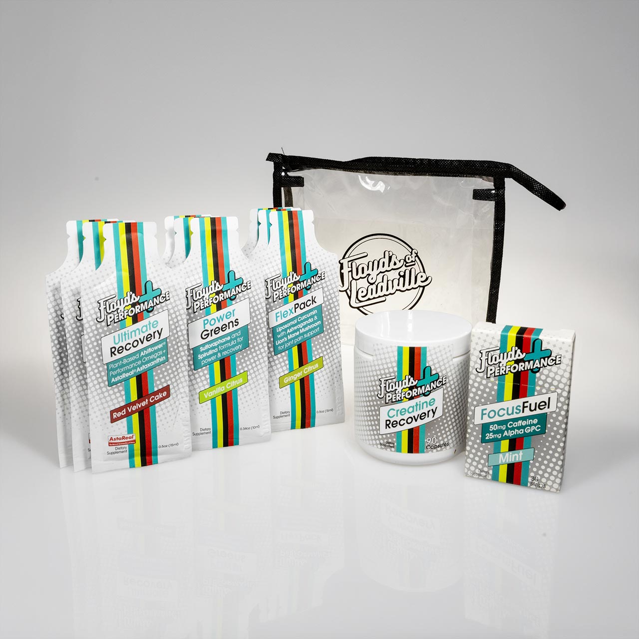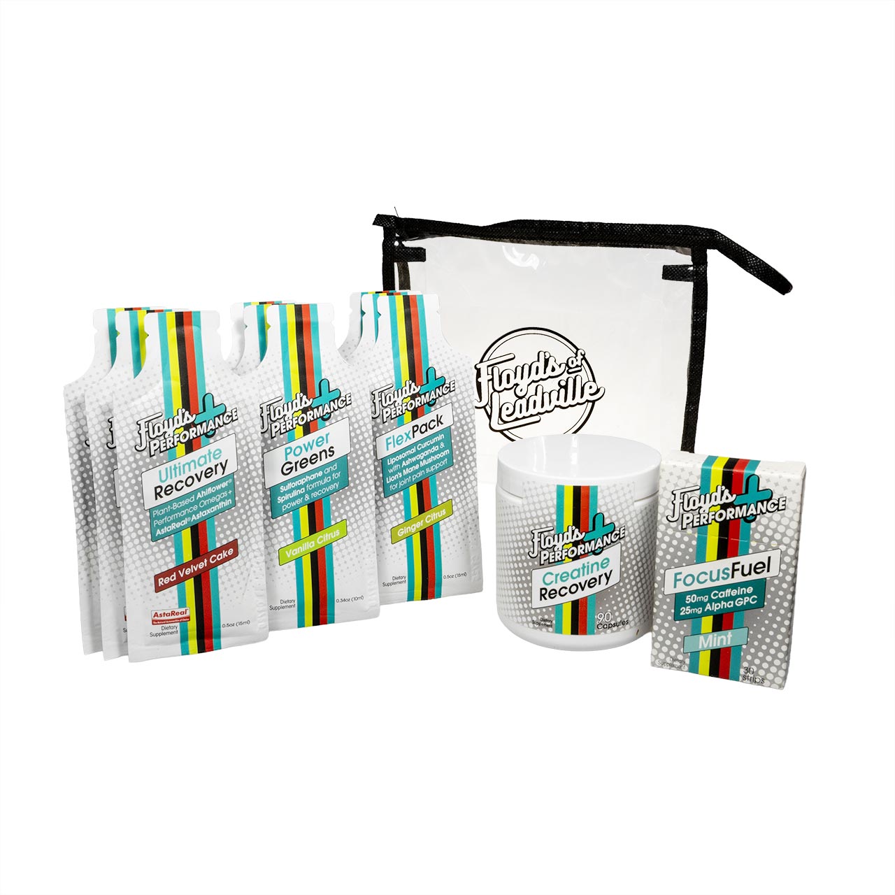 A great way to try our Floyd's Performance Plus products. 3 packets each of Ultimate Recovery, Power Greens, and FlexPack, plus a 30 day supply of Creatine HCL, and our convenient FocusFuel strips.